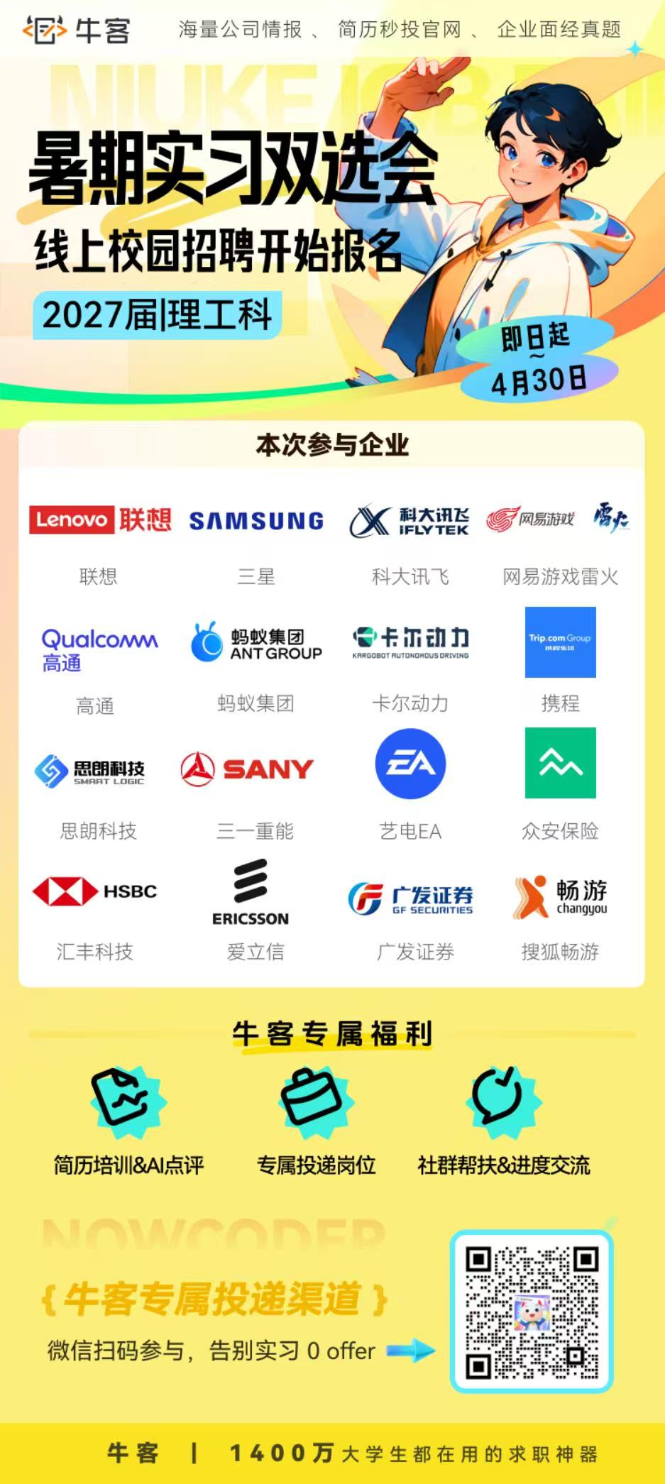 27届暑期实习双选会已启动!